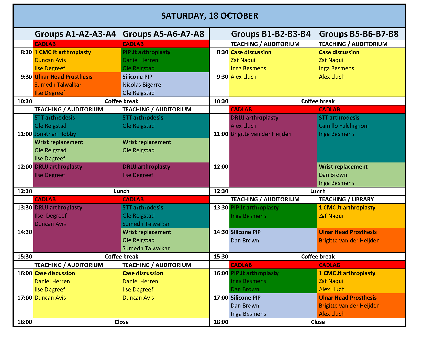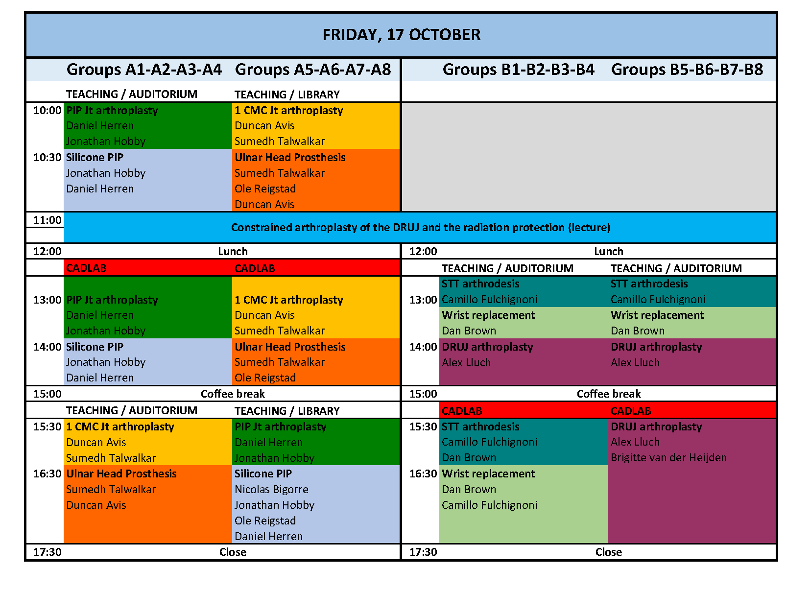 Attendees will be divided into two main groups, each comprising up to 16 surgeons and 8 observers.